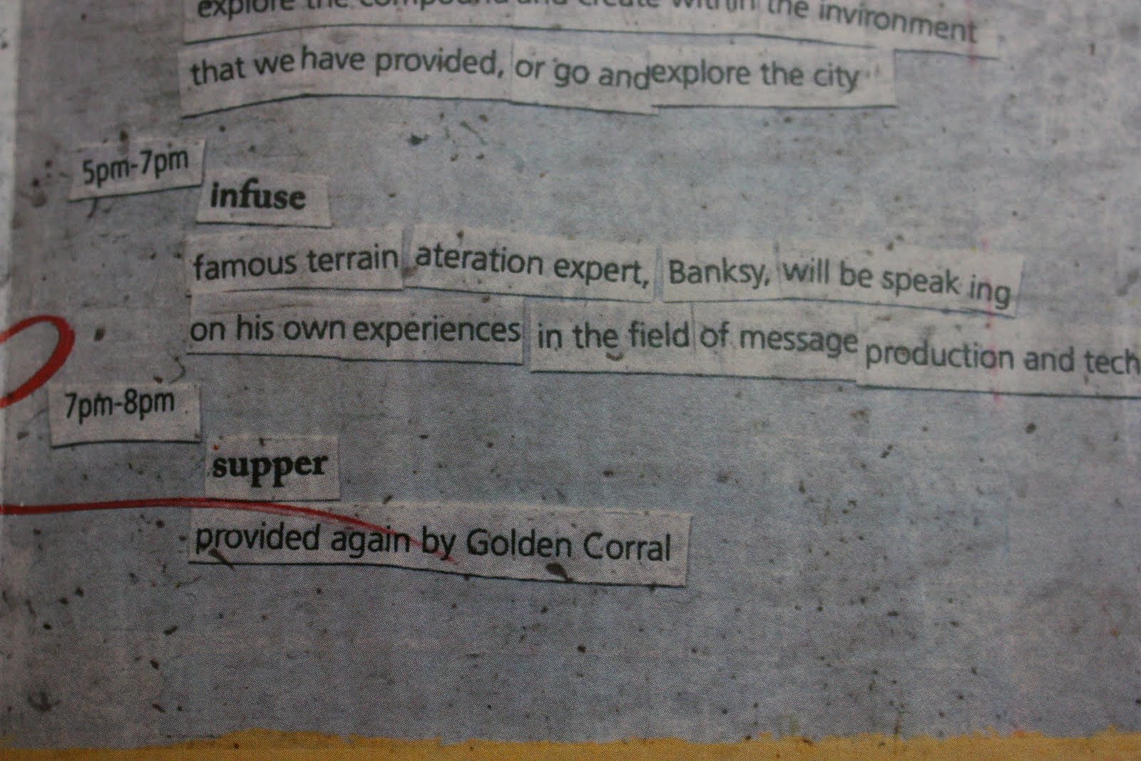 After much revision we have refined our direction down to a single concept. We are perpetuating the tools as well as the tools used for it. The visual identity has been narrowed down to a set number of visuals which are used throughout the identity. The idea behind all of them is that they all are part of what the conference is about. Each visual is an actual thing that has been used and other visuals are the aftermath of someone interacting with an environment or an object. All the type was hand set manually placed within the artifacts for a better integration into the quality of the rest of it.